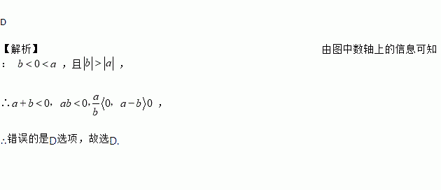 A. a+b<0 B. ab<0 C. <0 D. a-b<0