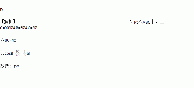如图,在Rt△ABC中,∠C=90°,AC=3,AB=5.则cosB等于( )