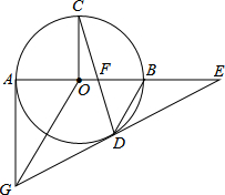 如图所示,AB是⊙O的直径,OC⊥AB,弦CD与OB交于点F,过圆心O作OG∥BD,交过点A所作⊙O的切线于点G,连结GD并延长与AB的延长线交于点E.