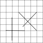 请采用两种不同的方法,在如图的方格纸中画出两条互相垂直的直线.
