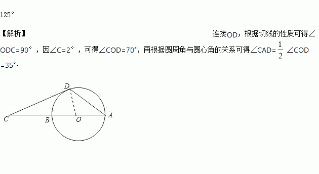 如图,AB是⊙O的直径,点C在AB的延长线上,CD与⊙O相切于点D,若∠C=20°,则∠CDA=_____.