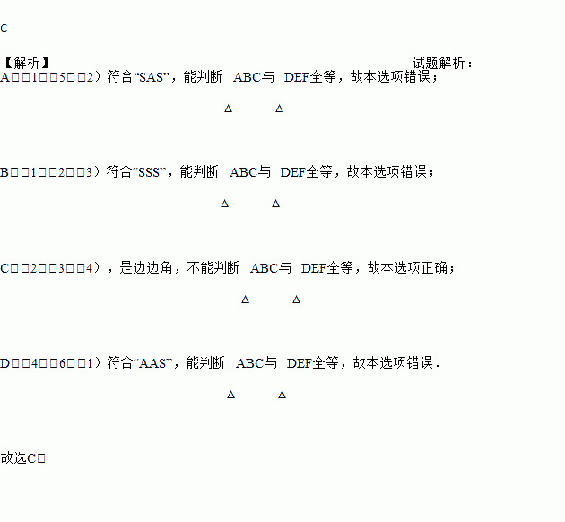 以其中三个作为已知条件,不能判断△ABC与△DEF全等的是( )