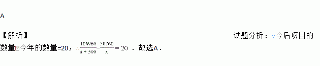 (3分)今年我市工业试验区投资50760万元开发了多个项目,今后还将投资106960万元开发多个新项目,每个新项目平均投资比今年每个项目平均投资多500万元,并且新增项目数量比今年多20个.假设今年每个项目平均投资是x万元,那么下列方程符合题意的是( )