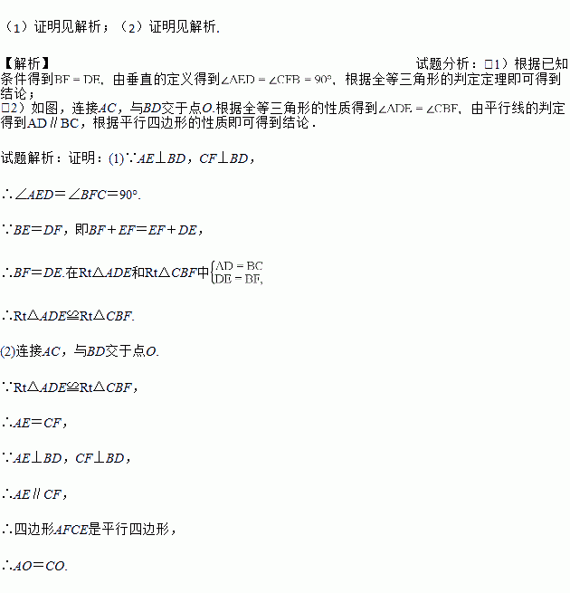 如图,在四边形ABCD中,AB=CD,BF=DE,AE⊥BD,CF⊥BD,垂足分别为E,F.
