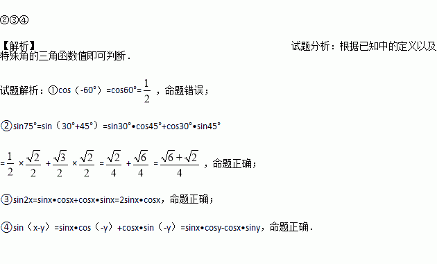 )=cosx,sin(x+y)=sinx•cosy+cosx•siny.据此判断下列等式成立的是______(写出所有正确的序号)①cos(
