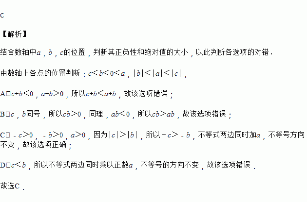 已知有理数a、b、c在数轴上对应的点如图所示,则下列结论正确的是( )