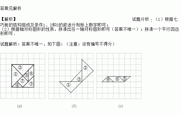 (1)请你在图(a)中给它的每一小块用①~⑦编号(编号直接标在每一小块对应图形内部的空白处;每小块只能与一个编号对应,每个编号只能和一个小块对应),并同时满足以下三个条件: