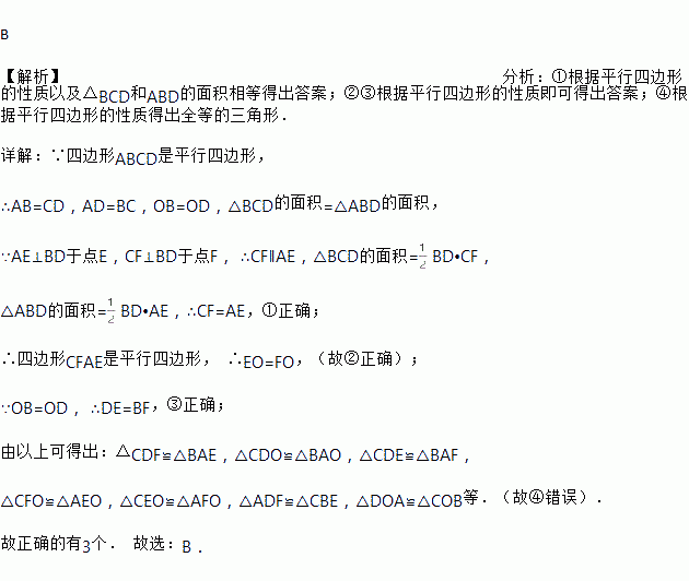 如图,在?ABCD中,对角线相交于点于点于点F,连结,则下列结论:;;;图中共有四对全等三角形其中正确结论的个数是