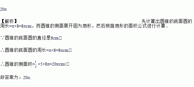 已知圆锥的底面直径是8cm,母线长是5cm,其侧面积是_____cm2(结果保留π).