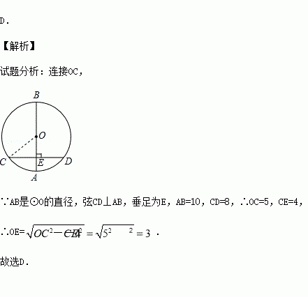 如图,AB是⊙O的直径,弦CD⊥AB,垂足为E,如果AB=10,CD=8,那么线段OE的长为( )