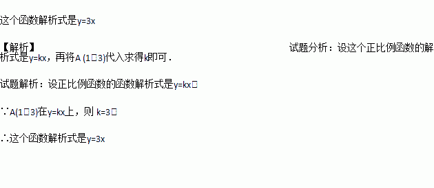 已知某正比例函数的图象经过点A (1,3),求此正比例函数的解析式。