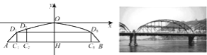 如图,一个拱形桥架可以近似看作是由等腰梯形ABD8D1和其上方的抛物线D1OD8组成.若建立如图所示的直角坐标系,跨度AB=44米,∠A=45°,AC1=4米,点D2的坐标为(-13,-1.69),则桥架的拱高OH=________米.
