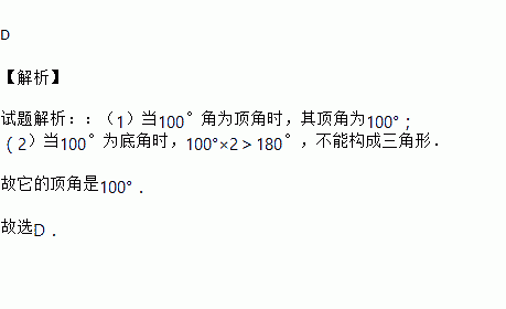 已知等腰三角形的一个角是100°,则它的顶角是( )