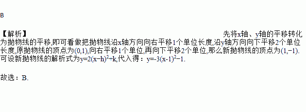 已知函数 y =-3 x 2 +1的图象是抛物线,若该抛物线不动,把 x 轴向上平移两个单位, y 轴向左平移一个单位,则该函数在新的直角坐标系内的函数关系式为( )