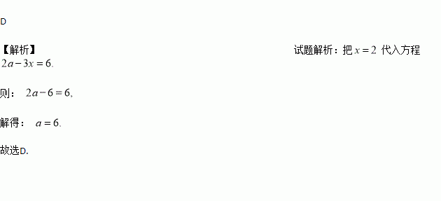 若x=2是方程2a﹣3x=6的解,则a的值是( )