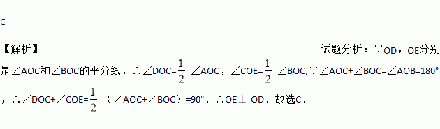 如图,∠AOB=180°,OD、OE分别是∠AOC和∠BOC的平分线,则与OD垂直的射线是( )