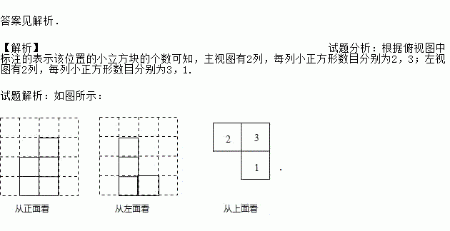 由几个相同的边长为1的小立方块搭成的几何体从上面看到的视图如图,方格中的数字表示该位置的小立方块的个数.请在下面方格纸中分别画出这个几何体从正面看和从左面看到的视图.