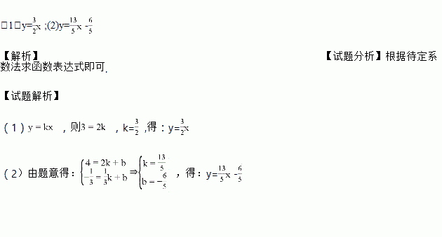 (1)y与x成正比例,当x=2时,y=3;