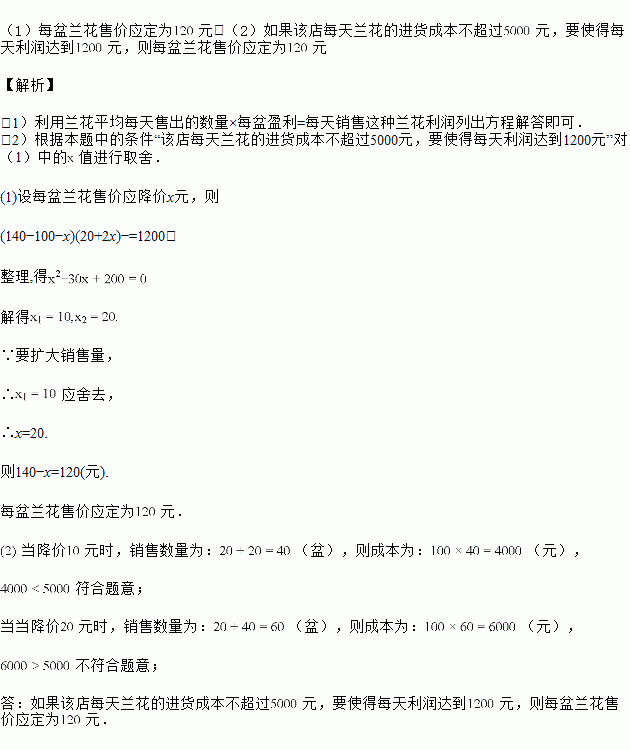 盆.为了扩大销量,该店决定适当降价.据调查,每盆兰花每降价![]()