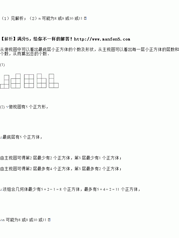 若组成这个几何体的小正方体的块数为,请你写出的所有可能值.