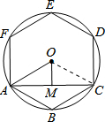分析 连接OC,求出∠AOM的度数,然后求出AO的长,即为正六边形的边长.