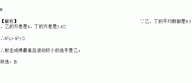 甲、乙、丙、丁四名射击选手,在相同条件下各射靶10次,他们的成绩统计如下表所示,