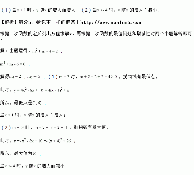 为何值时,抛物线有最低点?求出这个最低点,这时当![]()