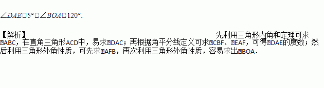 (10分)如图,△ABC中,AD是高,AE,BF是角平分线,它们相交于点O,∠CAB=50°,∠C=60°,求∠DAE和∠BOA的度数.
