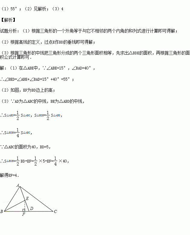 (1)∠ABE=15°,∠BAD=40°,求∠BED的度数;