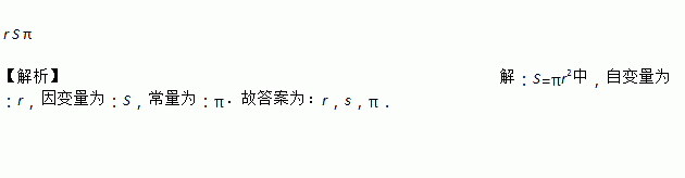 圆面积 S 与半径 r 之间的关系式 S=πr2 中自变量是____,因变量是____,常量是____.