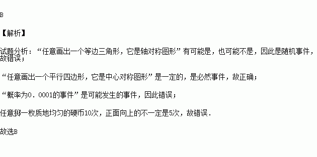 A.“任意画出一个等边三角形,它是轴对称图形”是随机事件