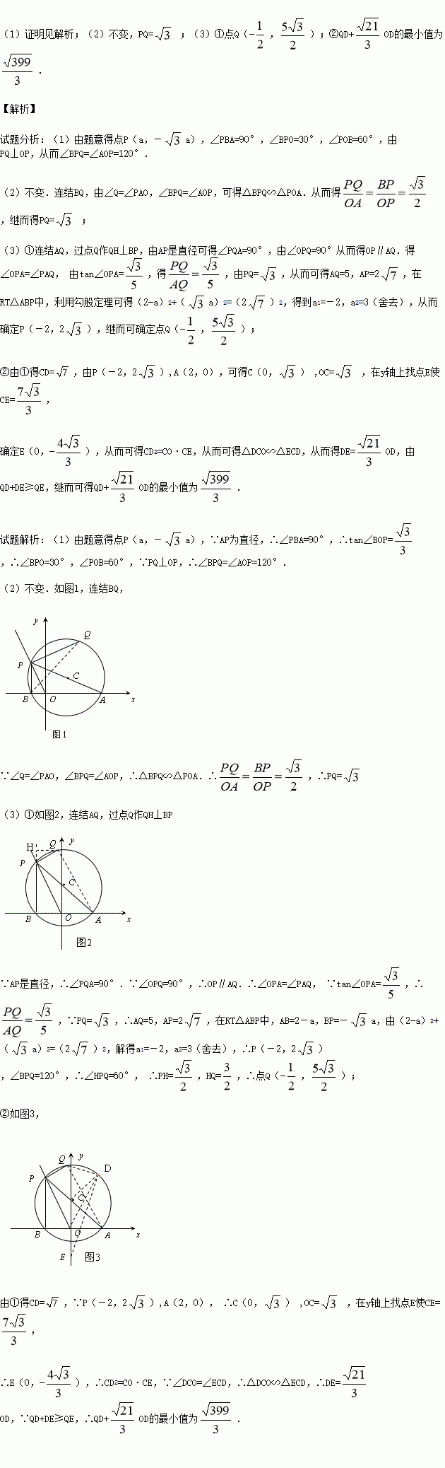 (x<0)上运动,设点P的横坐标为a,以AP为直径作⊙C,连接OP、PB,过点P作PQ⊥OP交⊙C于点Q.