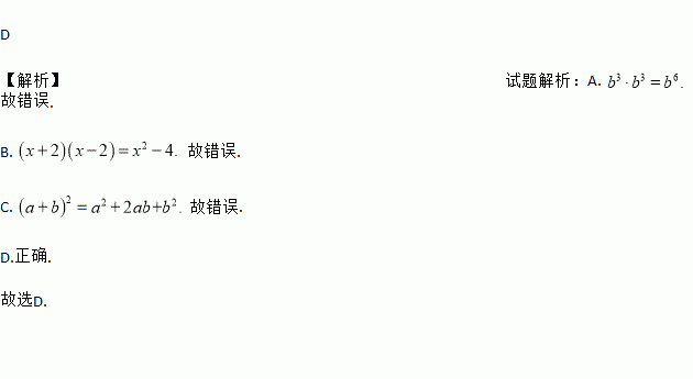 A. B. (x+2)(x—2)=x2—2 C. (a+b)2=a2 + b2 D. (-2a)2=4a2