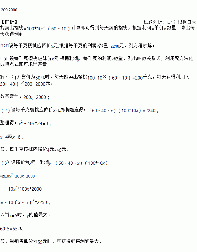(1)写出售价为50元时,每天能卖樱桃_____千克,每天获得利润_____元.