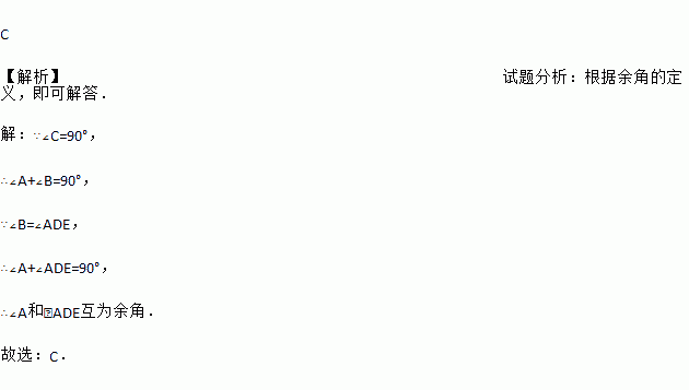 如图,在△ABC中,∠C=90°,点D,E分别在边AC,AB上.若∠B=∠ADE,则下列结论正确的是( )
