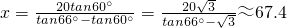分析:在Rt△ABD中,知道∠BAD=60°,在Rt△ACD中知道∠CAD=66°,AD是Rt△ABD和Rt△ACD的公共边,求BD的长,而DC=BD+BC=BD+20,设BD为x,用AD的长度作为相等关系,列方程即可求出BD.
