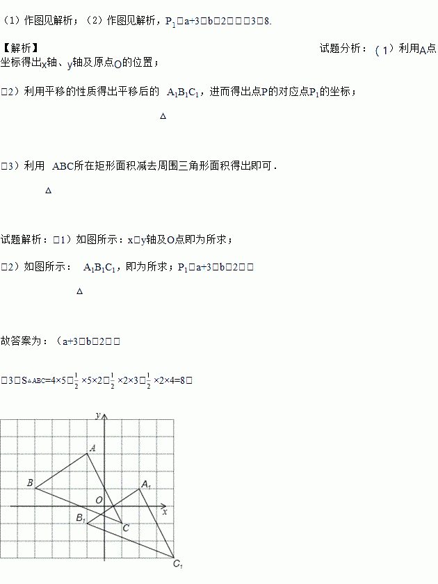 (2)把△ABC向下平移2个单位长度,再向右平移3个单位长度,请你画出平移后的△A1B1C1,若△ABC内部一点P的坐标为(a,b),则点P的对应点P1的坐标是 ;
