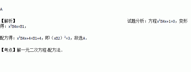 用配方法解方程x2-4x+1=0时,配方后所得的方程是( )