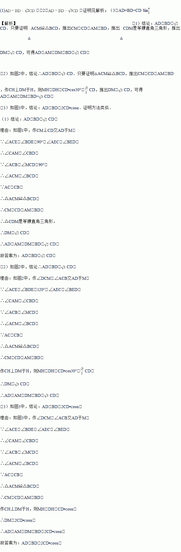 (1)如图1,当∠CAB=45°,∠BDP=90°时,请直接写出DA与DB、DC之间满足的数量关系为: .