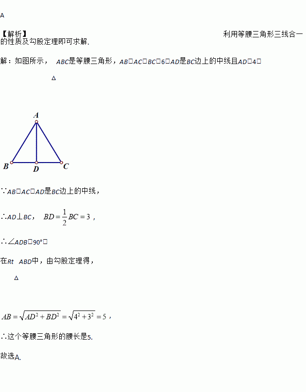 等腰三角形的底边长为6,底边上的中线长为4,它的腰长为( )