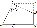 分析:过A点作AF⊥CD交CD的延长线于F点,由AE⊥BC,AF⊥CF,∠C=90°可得四边形AECF为矩形,则∠2+∠3=90°,而∠BAD=90°,根据等角的余角相等得∠1=∠2,加上∠AEB=∠AFD=90°和AB=AD,根据全等三角形的判定可得△ABE≌△ADF,由全等三角形的性质有AE=AF=5,S△ABE=S△ADF,则S四边形ABCD=S正方形AECF,然后根据正方形的面积公式计算即可.