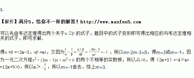 已知 ,是关于x的一元二次方程x2+(2m+3)x+m2=0的两个不相等的实数根,且满足=﹣1,则m的值是____.