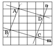 如图,在方格纸中,直线m与n相交于点C,