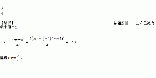 【解析】试题解析:∵二次函数有最小值﹣2, ∴y=﹣, 解得:m=.