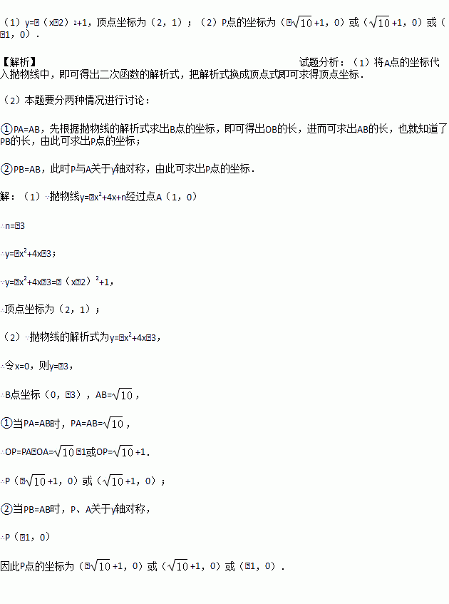 (2)若P是x轴上一点,且△PAB是以AB为腰的等腰三角形,试求P点坐标.(直接写出答案)