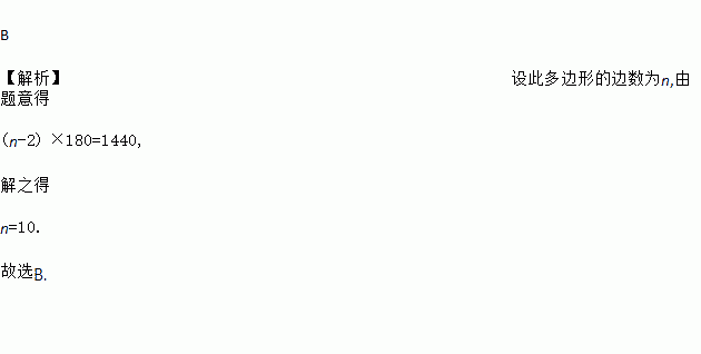 一个多边形的内角和为1 440°,则此多边形的边数为( )