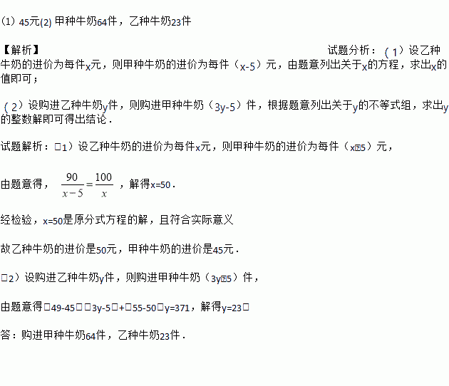 (1)求甲种牛奶、乙种牛奶的进价分别是多少元?