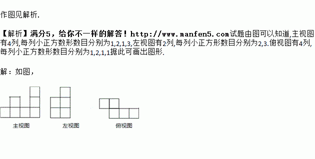 如图所示的几何体是由8个相同的小正方体搭成的,请画出它的主视图、左视图和俯视图.