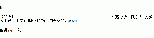 B 【解析】试题分析:根据被开方数大于等于0列式计算即可得解.由题意得,x﹣1≥0, 解得x≥1.故选B.