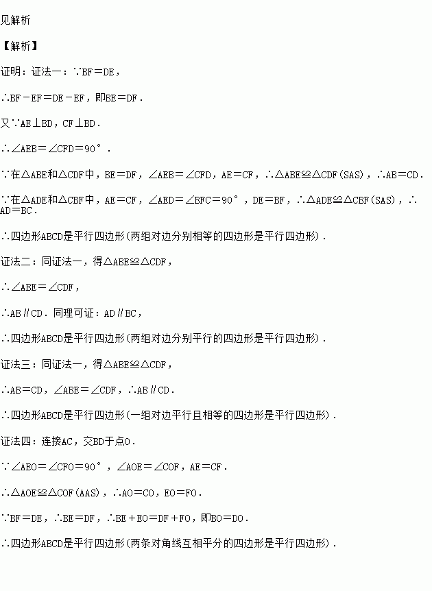 如图,已知在四边形ABCD中,AE⊥BD于E,CF⊥BD于F,AE=CF,BF=DE.求证:四边形ABCD是平行四边形.